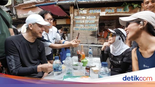 Bakal calon presiden (bacapres) Ganjar Pranowo berolahraga bersama istri, Siti Atikoh, di Car Free Day (CFD), Jakarta, pagi ini. Mereka pun sempat sarapan mie ayam di Jalan Blora Menteng, Jakarta Pusat.