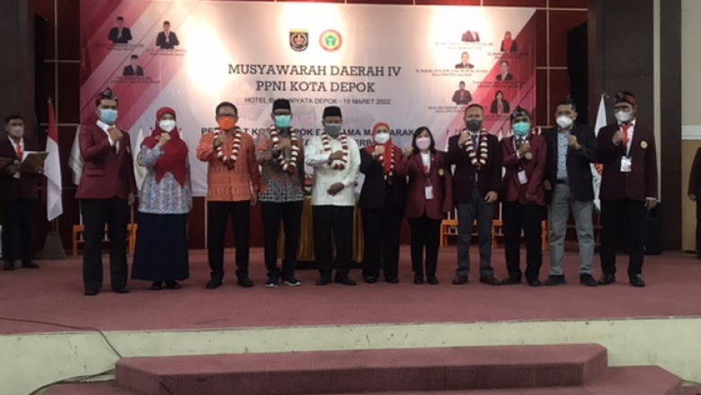 Wakil Gubernur Jawa Barat (Jabar) Ruzanul (UU) (baju putih) bersama Wakil Wali Kota Depok, Imam Budi Hartono membuka acara Musda IV Persatuan Perawat Nasional Indonesia (PPNI) Kota Depok di Hotel BW, Sabtu (19/3/2022). (Foto: Diskominfo).