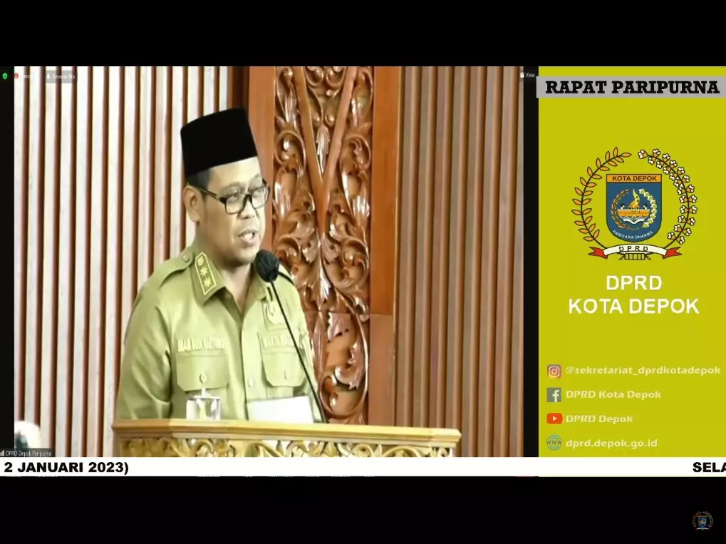pojokdepok.com- Wakil Wali Kota Depok, Imam Budi Hartono menghadiri rapat paripurna di ruang rapat paripurna Dewan Perwakilan Rakyat Daerah (DPRD) Kota Depok, Senin (02/01/23). Rapat yang dipimpin oleh Ketua DPRD Kota Depok, TM. Yusufsyah Putra tersebut digelar dalam rangka Pembukaan Masa Sidang Pertama Tahun Sidang 2023.