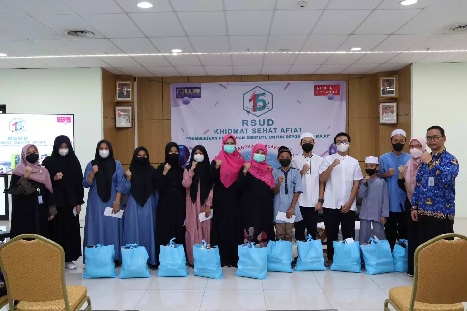 Direktur RSUD KiSA Kota Depok, Devi Maryori mengatakan, pihaknya menggelar santunan yatim kepada 11 anak pegawai rumah sakit, lalu membagikan bingkisan dan akta kelahiran serta Kartu Keluarga kepada satu bayi yang lahir pada 17 April 2023.