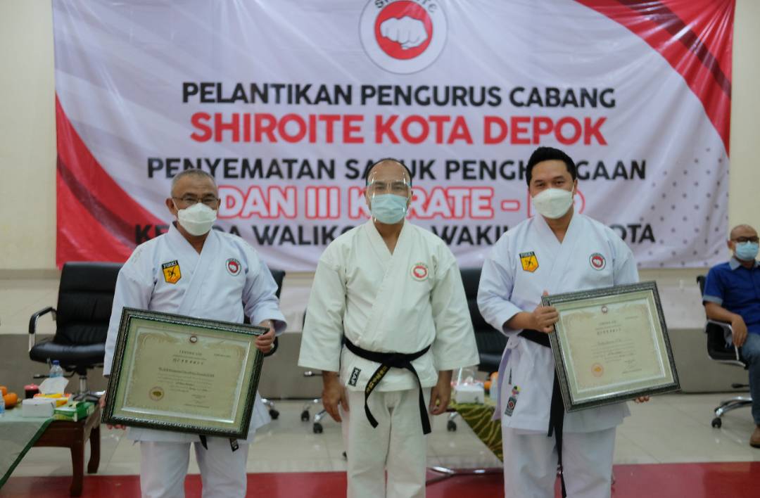 Pada kesempatan itu, penyematan Sabuk Penghargaan DAN III Karate-Do juga diberikan kepada Wali Kota Depok tersebut.