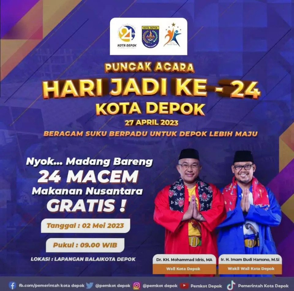 Ketua Panitia Hari Jadi ke-24 Kota Depok, Mangnguluang Mansur mengatakan, sesuai dengan tema Hari Jadi Kota Depok, yakni Beragam Suku Berpadu untuk Depok Lebih Maju, maka makanan dan minuman yang disiapkan berasal dari berbagai daerah di Indonesia.