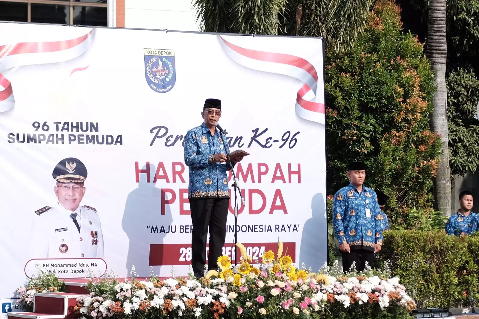 Asisten Pemerintahan dan Kesejahteraan Rakyat Kota Depok, Gandara Budiana, bertindak sebagai Pembina Upacara Peringatan Sumpah Pemuda menyampaikan pidato yang menggarisbawahi semangat persatuan dan peran pemuda dalam membangun bangsa.