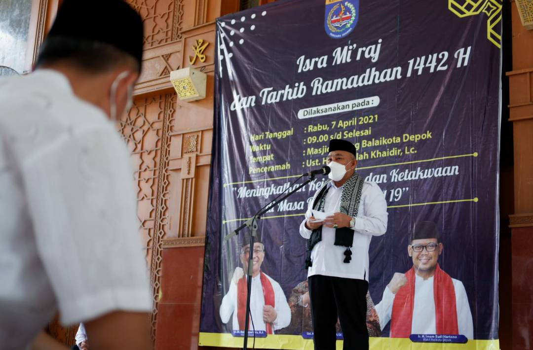 “Dengan doa yang kita panjatkan semoga bisa terlepas dari Covid-19 dan membawa kebahagiaan, serta keceriaan,” katanya saat menghadiri peringatan Isra Mi’raj dan Tarhib Ramadhan 1442 H di Masjid Balai Kota Depok, Rabu (07/04/2021).