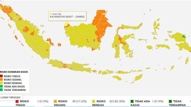Jakarta, CNBCÂ Indonesia – Satuan Tugas (Satgas) Penanganan Covid-19 kembali memperbaharui peta zonasi risiko Covid-19 yang tersebar di berbagai wilayah Indonesia.