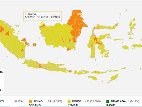 Pada minggu lalu, zona merah yang ada di Indonesia masih berada di lima wilayah. Namun, kini zona merah atau berisiko tinggi hanya tinggal tersisa satu wilayah.