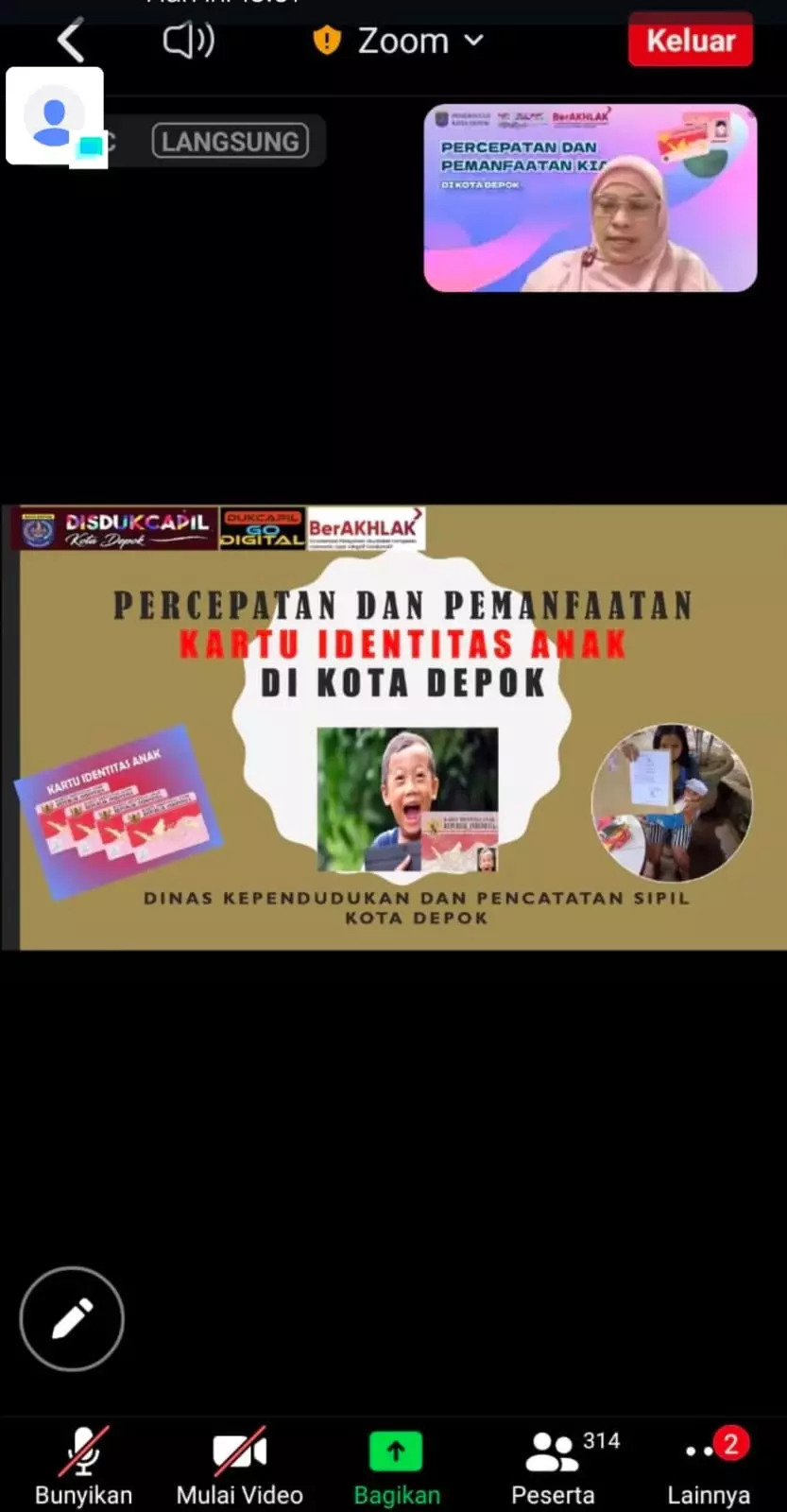 pojokdepok.com- Disdukcapil Kota Depok didapuk menjadi salah satu narasumber Dukcapil Menyapa Masyarakat (DMM) yang digelar Dirjen Dukcapil Kementerian Dalam Negeri (Kemendagri) secara daring hari ini. Dalam kesempatan tersebut, Kepala Disdukcapil Kota Depok, Nuraeni Widayati menyampaikan kiat Kota Depok dalam percepatan dokumen kependudukan Kartu Identitas Anak (KIA).