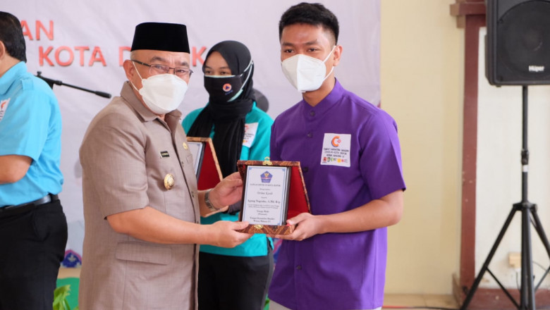 Wali Kota Depok Mohammad Idris saat melakukan pelepasan tenaga kesehatan di Tempat Karantina Mandiri Wisma Makara UI serta memberikan piagam penghargaan. (Foto: JD01/Diskominfo)