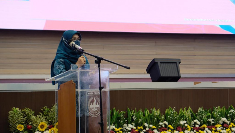 Ketua TP-PKK Kota Depok, Elly Farida saat peluncuran Program Depok Sukses Bebas Stunting Mewujudkan Kota Ramah Anak (D’Sunting Menara) di Gedung Dibaleka II, Lantai 10, Senin (22/11/21). (Foto: JD 04/Diskominfo)