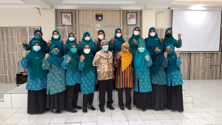 Sekretaris Kecamatan Cimanggis, Bambang Eko bersama Pokja 2 PKK Kecamatan Cimanggis usai melaksanakan rakor di Kantor Kecamatan Cimanggis. (Foto: Istimewa)