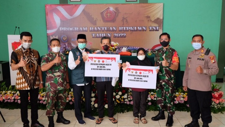 Komando Distrik Militer (Kodim) 0508/Depok bersama Pemerintah Kota Depok menyalurkan Bantuan Tunai untuk Pedagang Kaki Lima dan Warung (BTPKLW) untuk 26 ribu warga Depok. (Foto : JD01/Diskominfo)