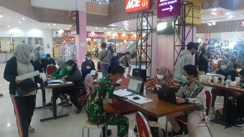 Kegiatan vaksinasi Covid-19 kolaborasi antara UPTD Puskesmas Mampang, Kodim 0508/Depok dan Koramil 01/Pancoran Mas di Mal Depok Trade Center, Senin (28/02/22). (Foto: istimewa).
