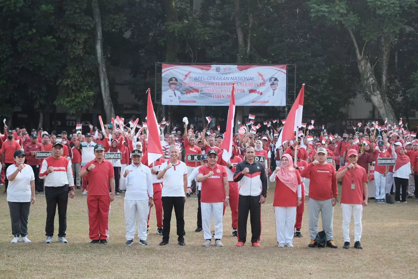 pojokdepok.com – Wali Kota Depok, Mohammad Idris menjadi pembina apel pagi Aparatur Sipil Negara (ASN) di lingkup Pemerintah Kota (Pemkot) Depok, yang dirangkai dengan Pencanangan dan Pembagian 10 Juta Bendera Merah Putih Tahun 2023 Tingkat Kota Depok di Lapangan Balai Kota Depok, (04/08/2023).
