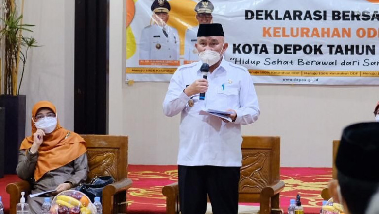 Wali Kota Depok Mohammad Idris saat menghadiri Deklarasi Kelurahan ODF tahun 2021. (Foto: JD04/Diskominfo)