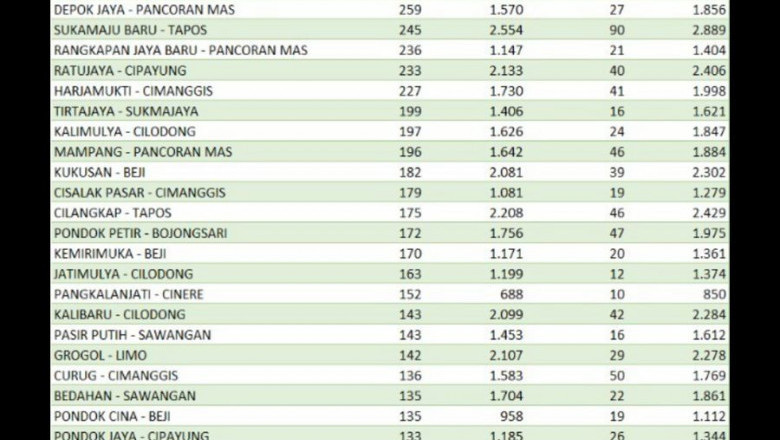 Selanjutnya, Kelurahan Duren Mekarsebanyak 69 kasus aktif, Kelurahan Sawangan Baru sebanyak 68 kasus aktif, Kelurahan Bojongsari Baru 68 kasus aktif dan Cipayung Jaya sebanyak 65 kasus aktif.