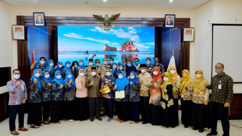Wali Kota Depok, Mohammad Idris didampingi Ketua TP PKK Kota Depok, Elly Farida bersama pengurus Kampung KB Cempaka RW 09 Depok Jaya usai mengikuti penilaian Lomba Apresiasi Kampung KB Terbaik tingkat Provinsi Jawa Barat Tahun 2021 secara virtual, di Aula Teratai Balaikota, Kamis (23/12/21). (Foto: JD 04/Diskominfo)