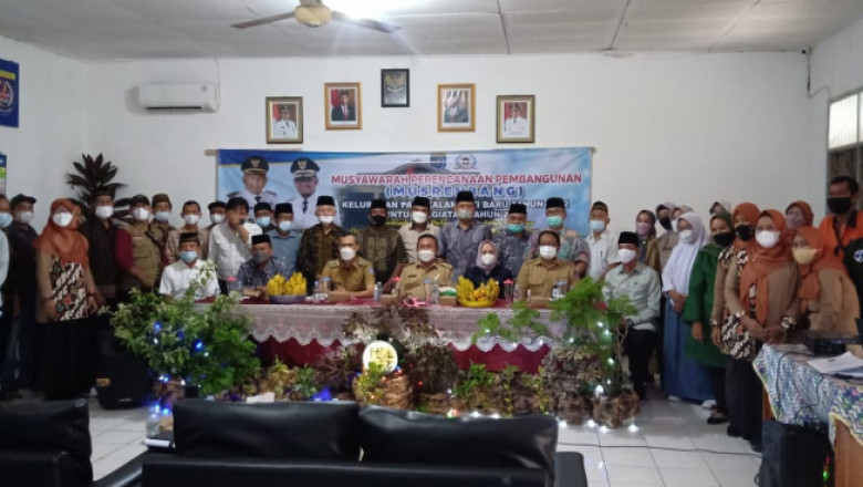 Seluruh peserta Musrenbang Kelurahan Pangkalan Jati Baru saat berfoto bersama di aula kantor kelurahan. (Foto : istimewa)