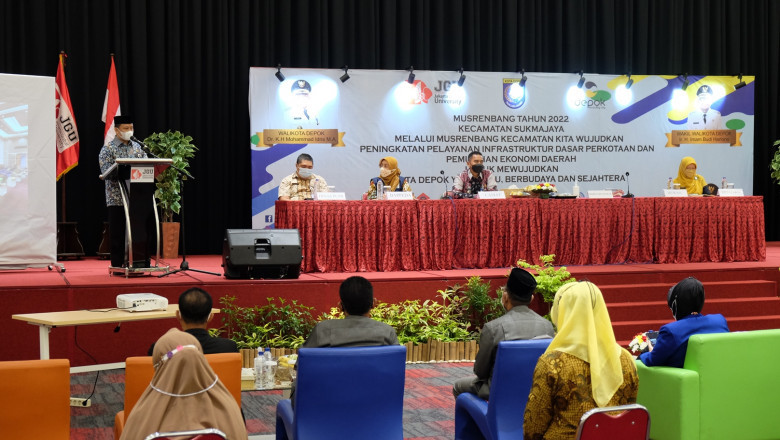 Kecamatan Sukmajaya mengadakan kegiatan Musyawarah Perencanaan Pembangunan (Musrenbang) Tingkat Kecamatan secara virtual dan tatap muka di Jakarta Global University, Grand Depok City, Jumat (04/02/2022). Kegiatan tersebut dibuka secara resmi oleh Sekretaris Daerah Supian Suri dan dihadiri oleh Anggota DPRD Kota Depok, perwakilan Perangkat Daerah, dan Tokoh Masyarakat se-Kecamatan Sukmajaya secara virtual. (JD01/EUD02)