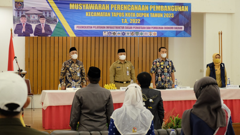 Kecamatan Tapos mengadakan kegiatan Musyawarah Perencanaan Pembangunan (Musrenbang) Tingkat Kecamatan secara virtual dan tatap muka di Kinasih Resort, Senin (07/02/2022). Kegiatan tersebut dibuka secara resmi oleh Sekretaris Daerah Supian Suri dan dihadiri oleh Anggota DPRD Kota Depok, perwakilan Perangkat Daerah, dan Tokoh Masyarakat se-Kecamatan Tapos secara virtual. (JD01/EUD02)