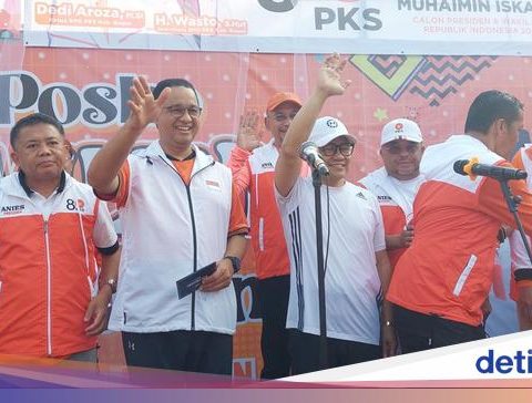 Bogor – Pasangan bakal calon presiden dan wakil presiden, Anies Baswedan-Muhaimin Iskandar (Gus Imin) meresmikan posko milenial di Cibinong, Bogor, Jawa Barat (Jabar). Teriakan ‘presiden’ dan ‘wakil presiden’ menyambut kedatangan keduanya. Pantauan detikcom, Minggu (17/9/2023) di Kantor DPC PKS Kabupaten Bogor, Jalan