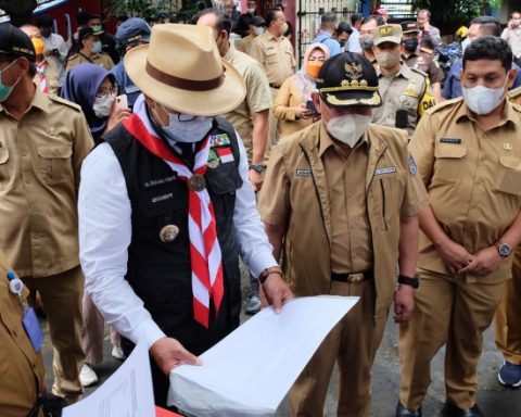 Foto: JD 01/Diskominfo Gubernur Jawa Barat, Ridwan Kamil didampingi Wali Kota Depok Mohammad Idris dan Wakil Wali Kota Depok Imam Budi Hartono saat meninjau lokasi rencana pembangunan Masjid Raya di SDN 1 Pondok Cina, Kecamatan Beji, Senin (14/02/22). pojokdepok.com – Pemerintah Kota