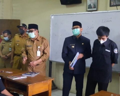 Wakil Wali Kota Depok, Imam Budi Hartono (IBH) meninjau langsung hari kedua pelaksanaan pembelajaran tatap muka (PTM) 100 persen di SMA dan SMK Putra Bangsa, Kelurahan Kemiri Muka, Kecamatan Beji, Selasa (11/01/2022). (Foto : Istimewa) pojokdepok.com- Wakil Wali Kota Depok, Imam Budi