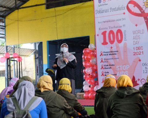 Ketua FKDS Kota Depok, Elly Farida saat membuka kegiatan Peringatan Hari AIDS Sedunia yang digelar WPA Kecamatan Pancoran Mas, di Klinik Bahar Medika, Rabu (01/12/21). (Foto: JD 04/Diskominfo) pojokdepok.com – Sejumlah elemen masyarakat di Kecamatan Pancoran Mas (Panmas) sepakat berkolaborasi untuk mencegah dan