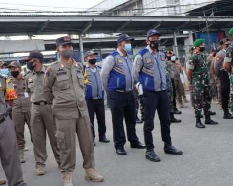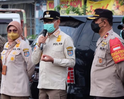 Personel gabungan saat melakukan apel persiapan penertiban bangunan milik pedagang kaki lima (PKL) di sisi barat bawah jembatan layang atau fly over Arif Rahman Hakim (ARH). (Foto: JD01/Diskominfo) pojokdepok.com – Sebanyak 205 personel gabungan melakukan penertiban bangunan milik pedagang kaki lima (PKL) di sisi