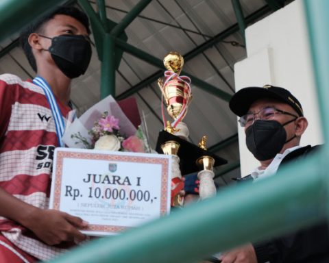 Wali Kota Depok Mohammad Idris saat menyerahkan piala kepada SMPN 11 Depok sebagai Juara Bertahan LPI Kota Depok. (Foto: JD01/Diskominfo) pojokdepok.com – SMP Negeri (SMPN) 11 Depok kembali tampil sebagai juara Liga Pendidikan Indonesia (LPI) Kota Depok memperebutkan hadiah berupa piala dan