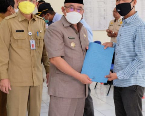Wali Kota Depok, Mohammad Idris menyerahkan Surat Keputusan (SK) pencairan bantuan kepada warga terdampak bencana angin puting beliung, di Kelurahan Pondok Petir, Kecamatan Bojongsari, Selasa (19/10/21). (Foto: JD 01/Diskominfo) pojokdepok.com – Wali Kota Depok, Mohammad Idris hari ini menyerahkan Surat Keputusan (SK)