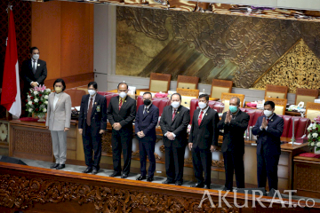 Ketua Komisi X DPR RI F-PKB Syaiful Huda dan Sekretaris Kemenpora RI Gatot Sulistiantoro Dewa Broto saat menjadi pembicara dalam diskusi Forum Legislasi di Media Center, Kompleks Parlemen MPR/DPR-DPD, Senayan, Jakarta, Selasa (21/6/2021). Diskusi Forum Legislasi ini membahas Tema: “Masa Depan Atlet
