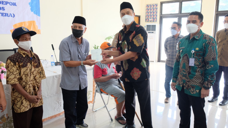 Asisten Asisten Ekonomi dan Pembangunan Sekretariat Daerah (Sekda) Kota Depok, Sidik Mulyono saat menyerahkan secara simbolis KDS kepada warga Sukmajaya. (Foto: JD01/Diskominfo)