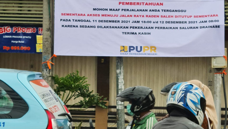 Spanduk pemberitahuan Jalan Raya Raden Saleh ditutup sementara karena ada pengerjaan drainase oleh DPUPR Kota Depok. (Foto: istimewa)