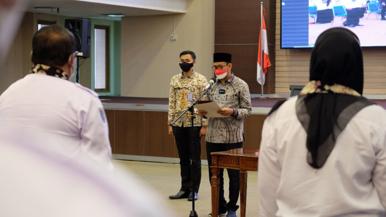 Wakil Wali Kota Depok, Imam Budi Hartono saat melantik Pengurus Karang Taruna (Katar) Kota Depok masa bakti 2020-2025, di Aula Lantai 10, Gedung Dibaleka II, Kamis (28/10/21). (Foto: JD 01/Diskominfo)