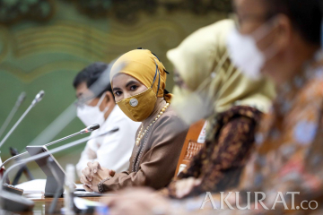 Direktur Utama PT. Pertamina Nicke Widyawati saat memberikan penjelasan kepada Komisi VII dalam rapat kerja di Nusantara II, Kompleks Parlemen MPR/DPR-DPD, Senayan, Jakarta, Rabu (6/4/2022). Adapun rapat kerja tersebut membahas tentang ketahanan BBM, kinerja Pertamina Hulu, persiapan kilang menghadapi lebaran, progres GRR Tuban dan isu-isu lain-lain. pojokdepok.com -/Sopian