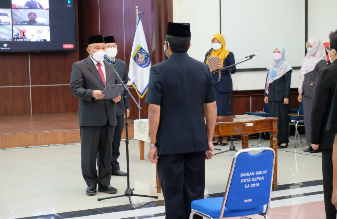 pojokdepok.com-Pelantikan dan sumpah jabatan 359 Aparatur Sipil Negara (ASN) Pemerintah Kota (Pemkot) Depok digelar di Ruang Teratai Balai Kota Depok, Selasa (07/09/2021). Ratusan ASN tersebut langsung dilantik oleh Wali Kota Depok, Mohammad Idris.