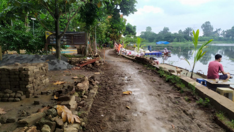 Proses pembangunan jogging track di Situ Tujuh Muara, Kelurahan Bojongsari. (Foto : Istimewa)
