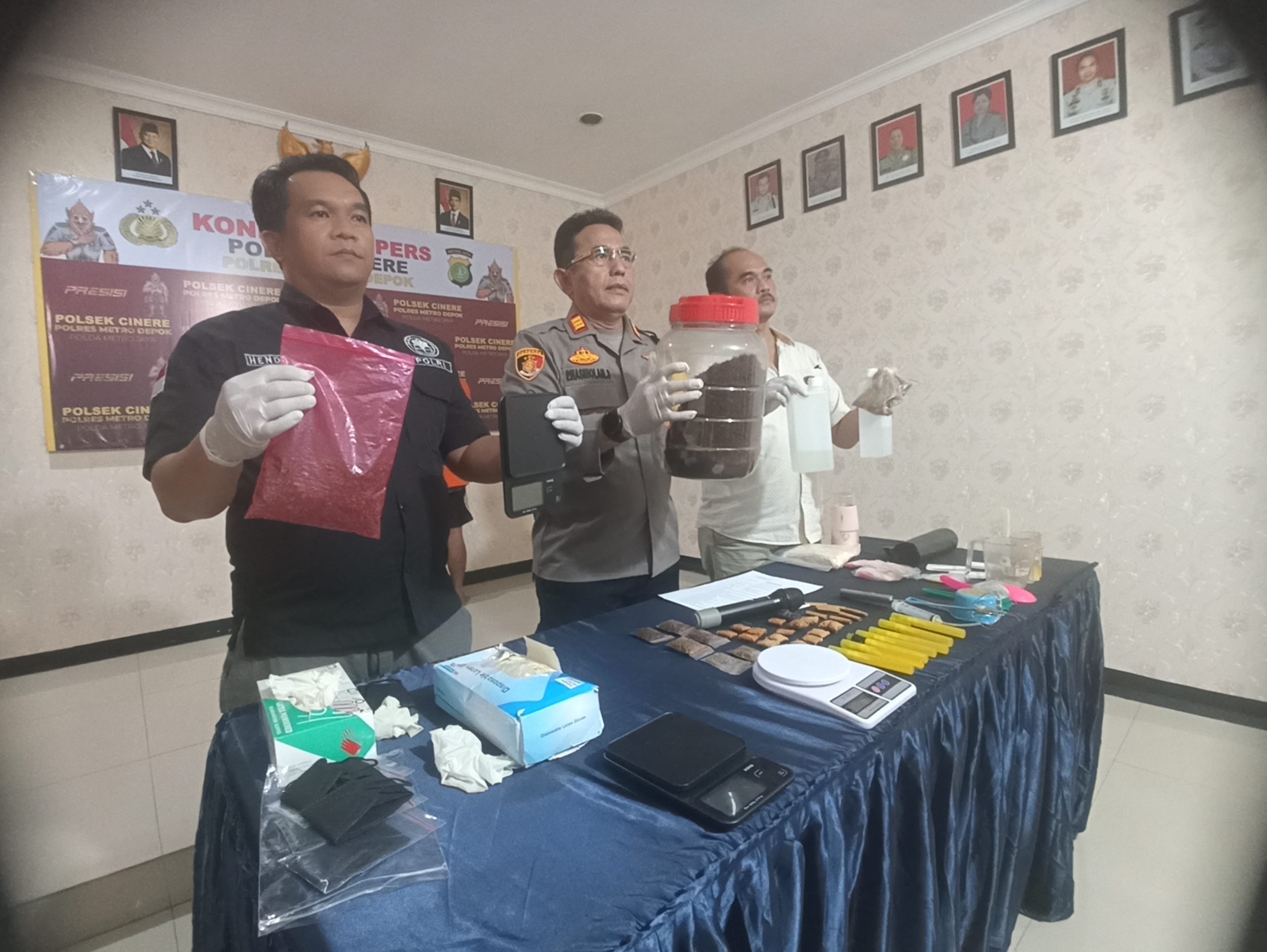 Kedua tersangka ditangkap di kamar kos mereka di Jalan Raya Gandul, Depok, setelah kepolisian menerima laporan peredaran narkotika di wilayah Limo, Kota Depok.