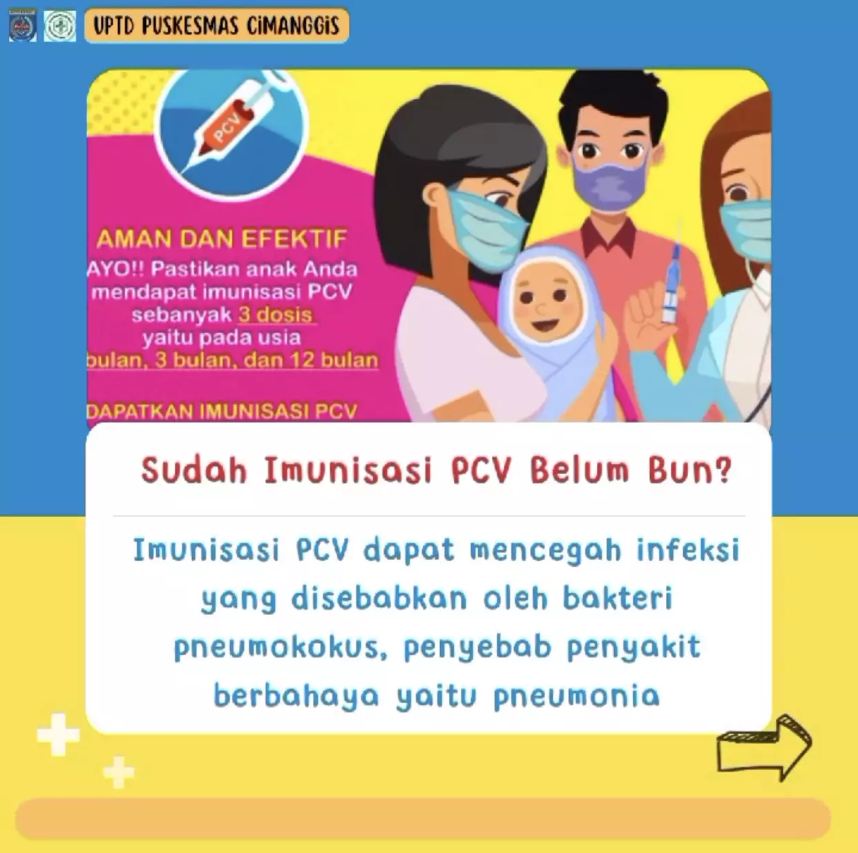 pojokdepok.com- Unit Pelaksana Teknis Dinas (UPTD) Puskesmas Cimanggis mengajak masyarakat yang memiliki bayi untuk memberikan imunisasi Pneumococcal Conjugate Vaccine (PCV). Imunisasi tersebut dapat mencegah infeksi yang disebabkan oleh bakteri pneumokokus yaitu penyebab pneumonia.