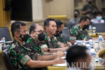 Panglima TNI Jenderal Andika Perkasa saat mengikuti rapat dengan Komite I DPD di Nusantara VI, Kompleks Parlemen MPR/DPR-DPD, Senayan, Jakarta, Selasa (8/2/2022). Rapat kerja ini membahas mengenai pelaksanaan UU Nomor 43 Tahun 2008 tentang Wilayah Negara. pojokdepok.com -/Sopian