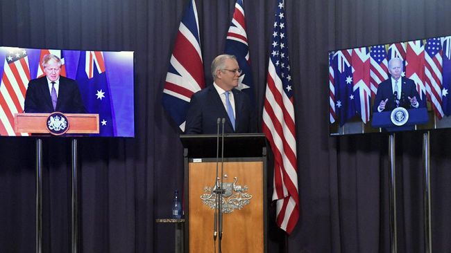 Hal ini terjadi setelah Negeri Kanguru membentuk aliansi pertahanan bersama Amerika Serikat (AS) dan Inggris yang disebut sebagai AUKUS. Dalam hal ini, Canberra akan mendapatkan bantuan pengembangan kapal selam nuklir.