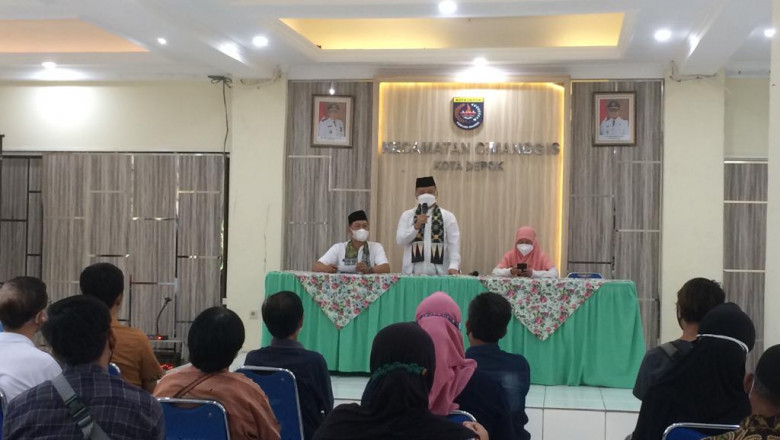 Sekda Kota Depok Supian Suri memberikan sambutan saat monitoring pelaksanaan penandatanganan buku tabungan BJB oleh penerima bantuan sosialKDS di Kantor Kecamatan Cimanggis, Rabu (22/12/21). (Foto: JD02/Diskominfo)