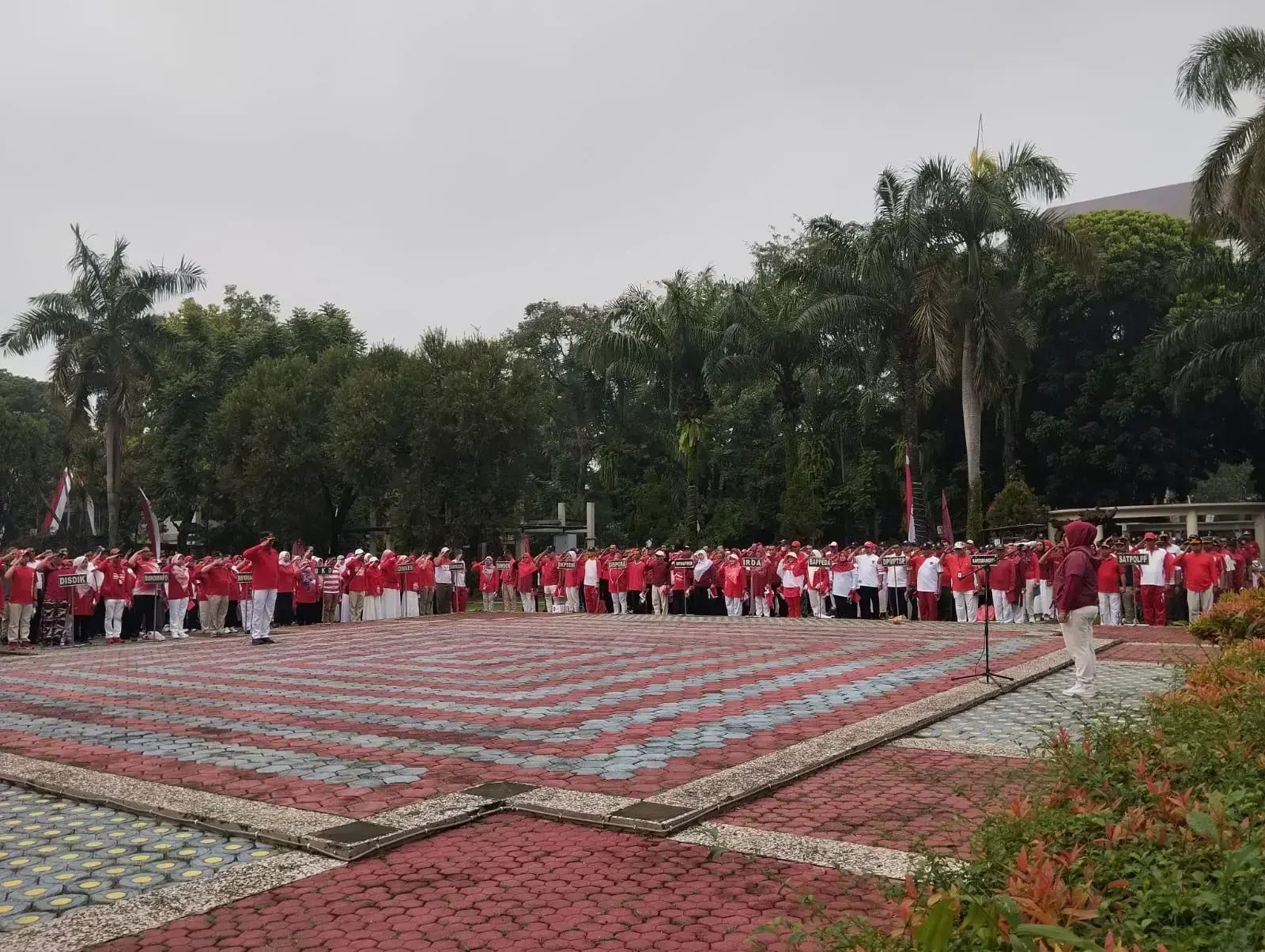 Sebanyak 2.567 bendera merah putih berhasil dikumpulkan pada apel pagi di Lapangan Apel Balai Kota Depok, Jumat (08/08/25).