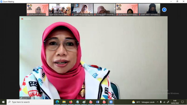 Penasihat DWP Kota Depok Elly Farida saat memberikan sambutan dalam kegiatan Pelatihan E-Reporting secara virtual, Kamis (22/02/22). (Foto: tangkapan layar)