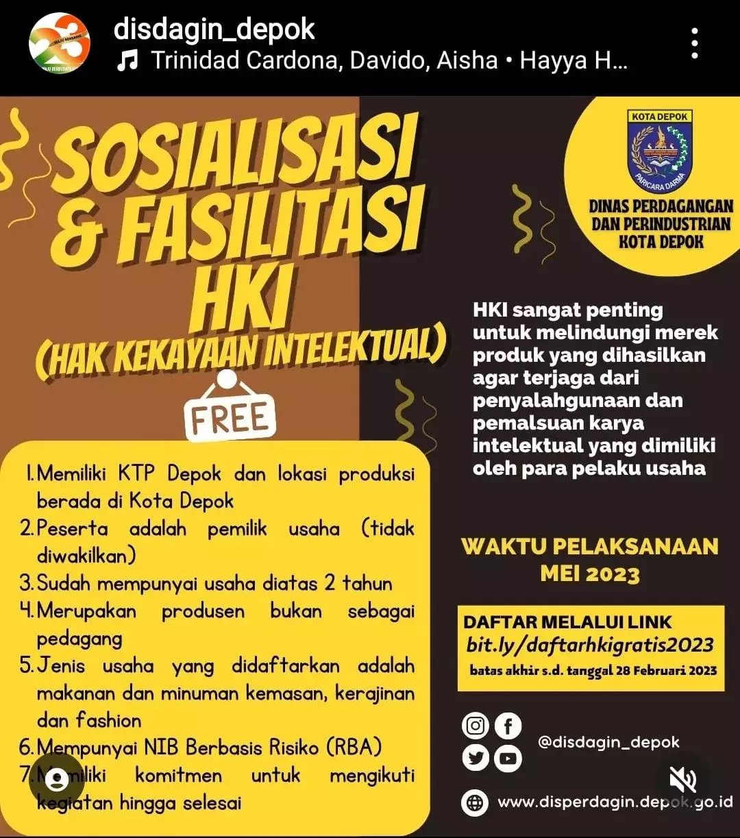 Kepala Disperdagin Kota Depok, Zamrowi menjelaskan, sertifikat HKI sangat penting untuk melindungi merek produk yang dihasilkan agar terjaga dari penyalahgunaan dan pemalsuan karya intelektual milik para pelaku usaha.