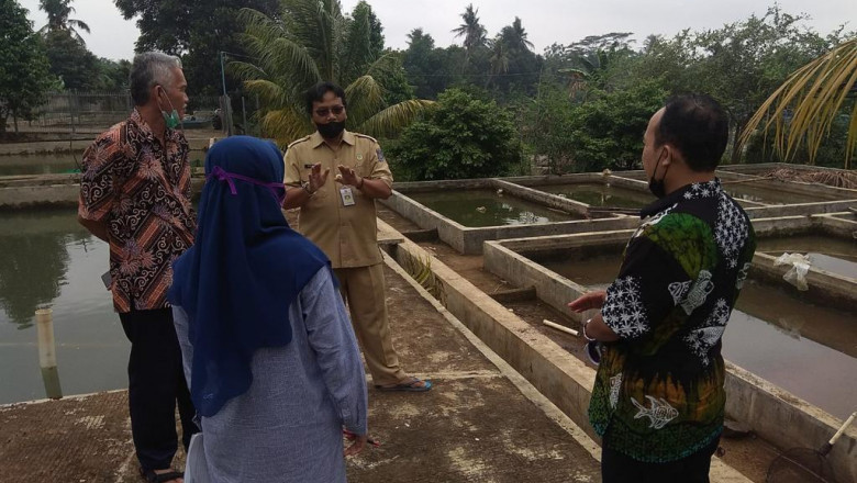 Peninjauan lokasi bersama peneliti BRIN untuk pengembangan budidaya ikan hias di BBI Kota Depok, Selasa (18/01/22). (Foto: istimewa).