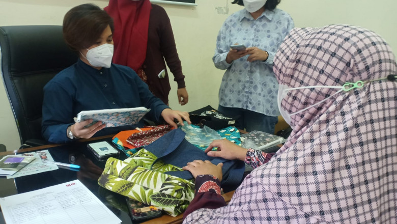 Tim UNIQLO Indonesia sedang melakukan kurasi terhadap produk IKM yang akan dipromosikan di gerai UNIQLO, di Gedung Dekranasda Kota Depok, Jumat (25/02/22). (Foto: JD 05/Diskominfo).