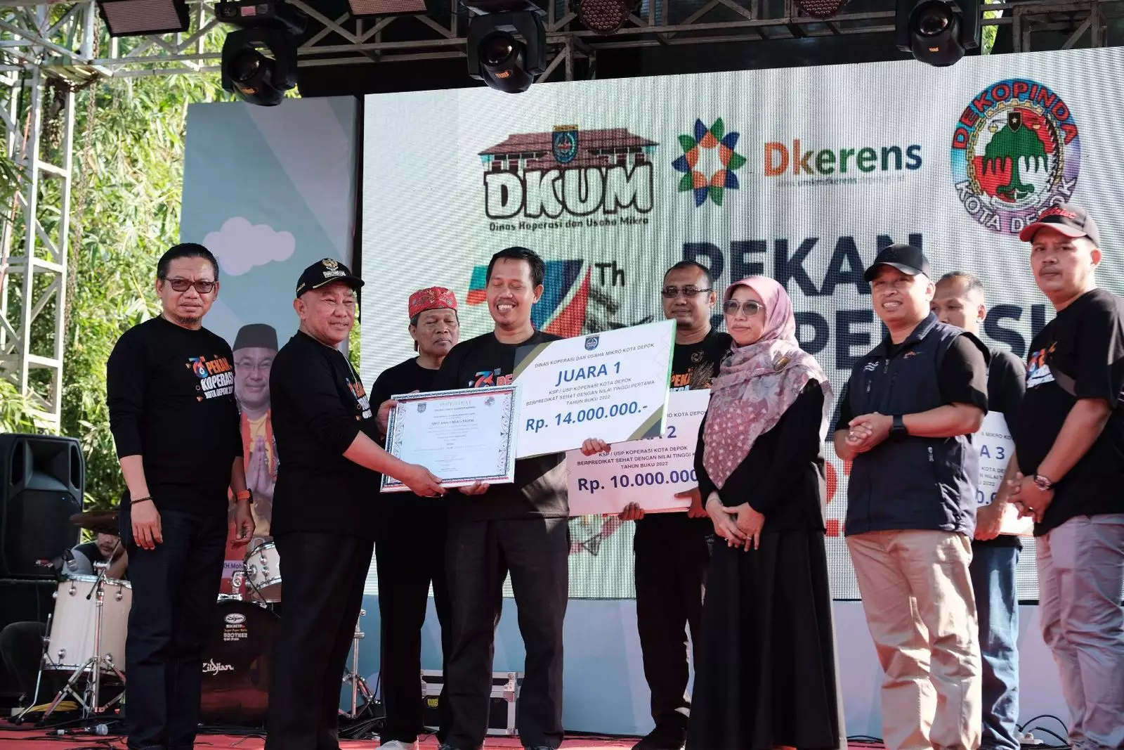 Penghargaan diberikan pada Pekan Koperasi Kota Depok 2023, di Pasar Rakyat Jabar, Sawangan Baru, Kecamatan Sawangan, yang digelar sejak 19 hingga 21 Juli 2023.