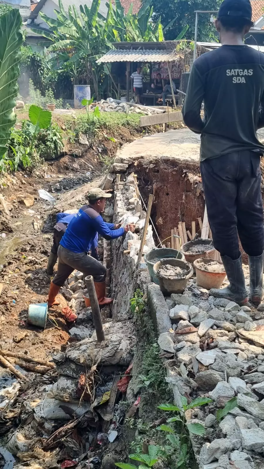 pojokdepok.com – Dinas Pekerjaan Umum dan Penataan Ruang (DPUPR) Kota Depok telah mengirimkan satu regu Satuan Tugas (Satgas) untuk melakukan penanganan turap longsor di Gang Nangka RT/RW 04 Kelurahan/Kecamatan Sawangan. Pengguna jalan diminta mencari jalur alternatif lain.