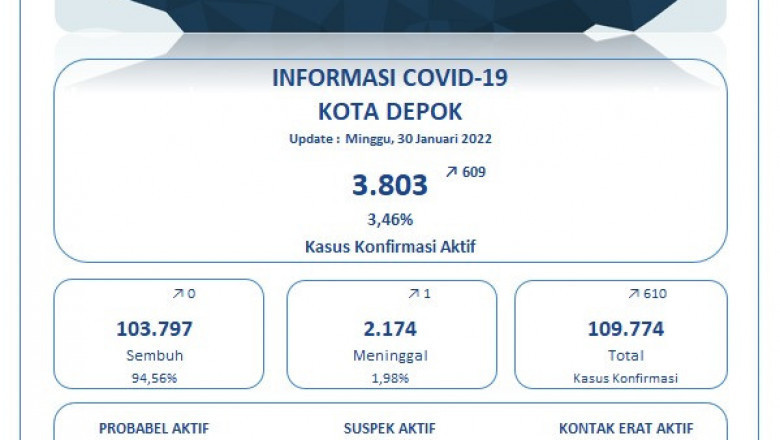 Kemudian, kasus konfirmasi aktif naik 609 orang dari hari sebelumnya. Lalu, kasus suspek aktif 0 kasus dan kasus kontak erat 0 kasus.